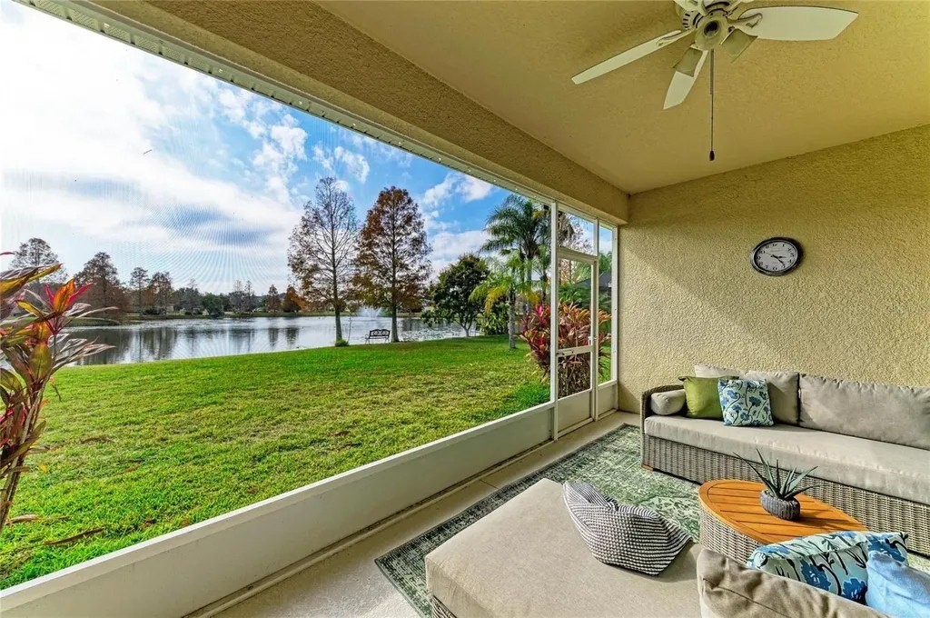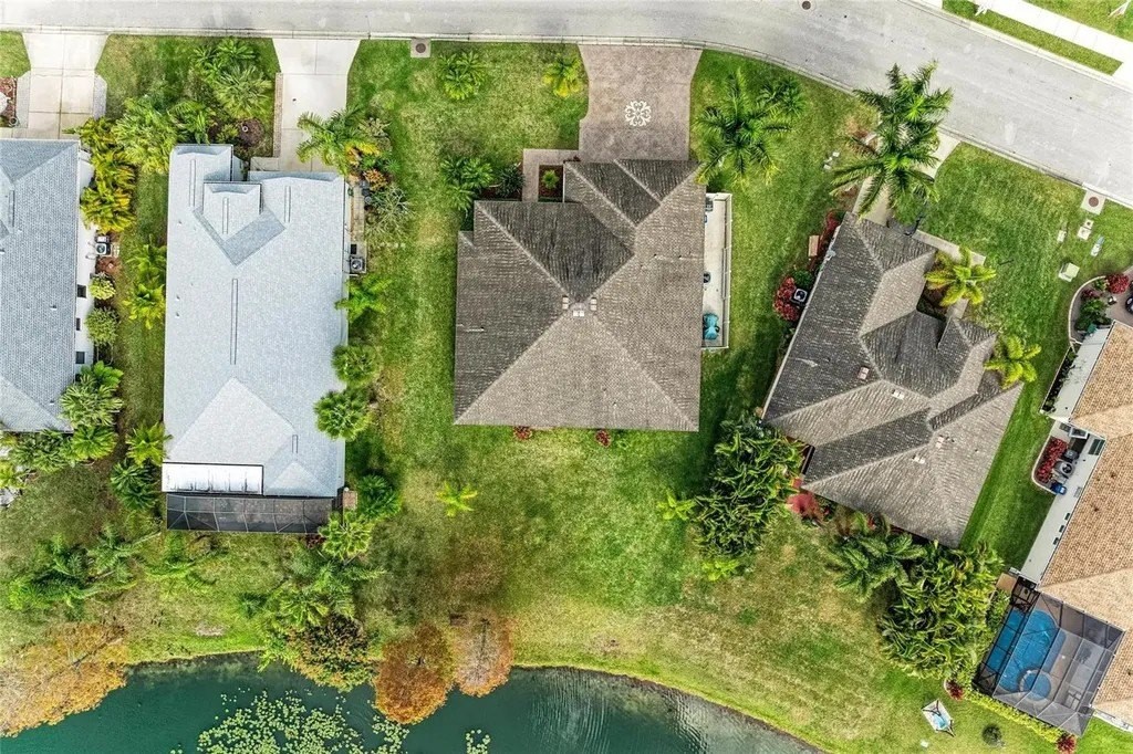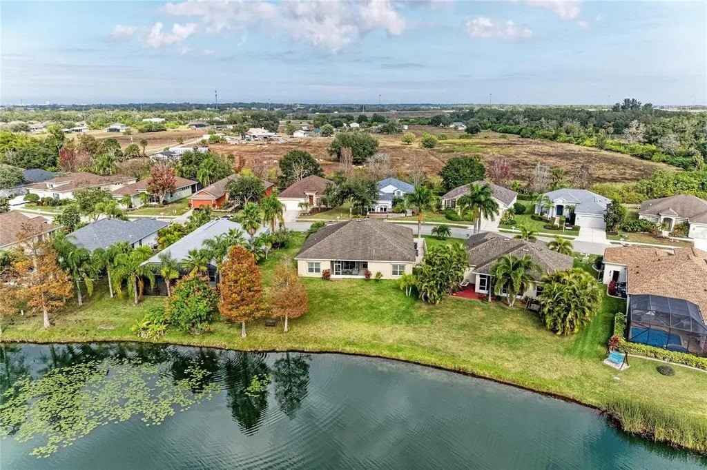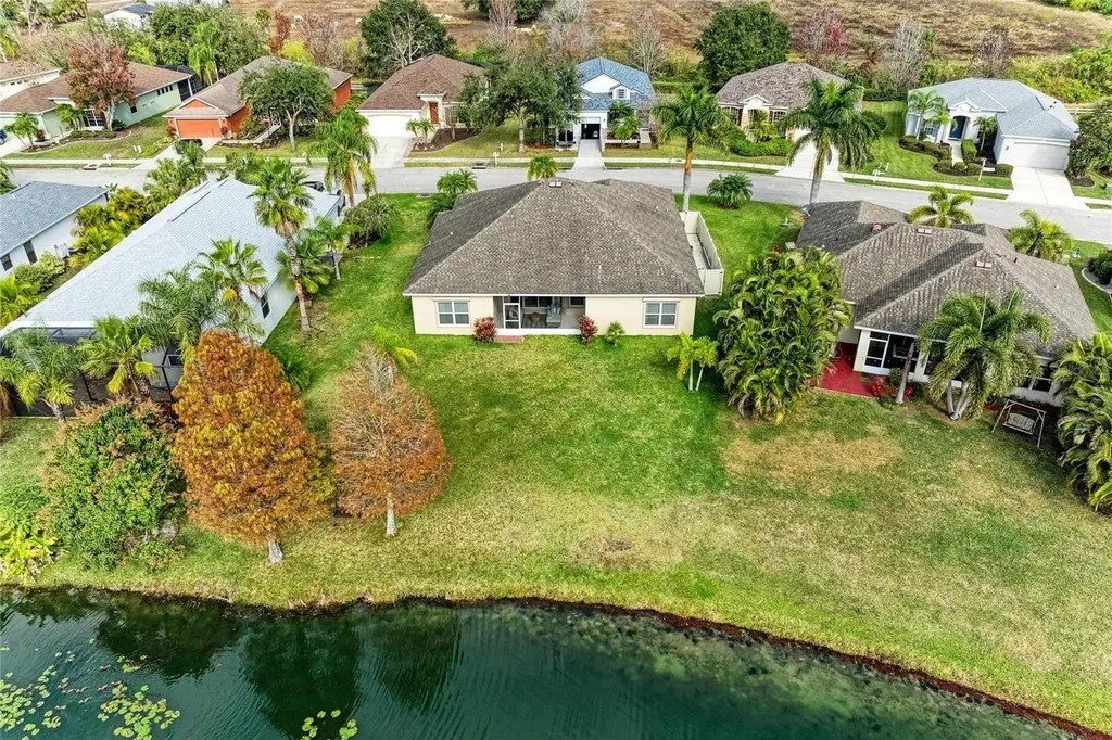 Welcome to one of the newest homes, built in 2014 by Center Pointe Homes, in the boutique Northwood Park enclave, ideally situated on one of the community’s premier lake front homesites with highly desirable southern exposure. This oversized, premium pie-shaped waterfront lot accommodates a 3-CAR garage with a beautifully stained decorative driveway featuring queen palms in the landscaping. From the welcoming front porch to the covered and screened-in lanai on the lakeside, this beautifully appointed residence has so much to offer! The spacious great room features crown molding and flows seamlessly into a formal dining area, creating an ideal setting for entertaining. The open kitchen is thoughtfully designed with granite countertops, abundant cabinetry, and a charming breakfast caf overlooking the backyard and tranquil lake views. The generous primary suite features lake views, a large walk-in closet and a relaxing bath with granite countertops and a huge shower. Tucked away, a private en-suite is ideal for a mother-in-law or guest suite with its own bath and large walk-in closet provides exceptional flexibility. Two additional guest bedrooms, a 3rd full bath, and a dedicated front office/den with French doors ensure ample space for work and relaxation. The home is equipped with a newer HVAC (2024), newly painted exterior (2025) and newer whole-house hurricane protection (2025), including the front door, utilizing roll-down and accordion shutters for enhanced peace of mind. A highly functional laundry room features front-loaders on storage pedestals, generous upper and lower cabinetry, and a long countertop perfect for folding or everyday drop-zone use. Additional highlights include a fenced east-side storage area, pull-down attic access with plywood flooring, and a partial home generator with one-touch operation. Low HOA fees, NO CDD fees, and a nearby community park further enhance the appeal. Ideally located near I-75 and I-275 with easy access to St. Petersburg, Tampa, Bradenton, and Sarasota, this home will provide the very best in the Florida lifestyle.