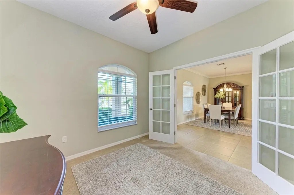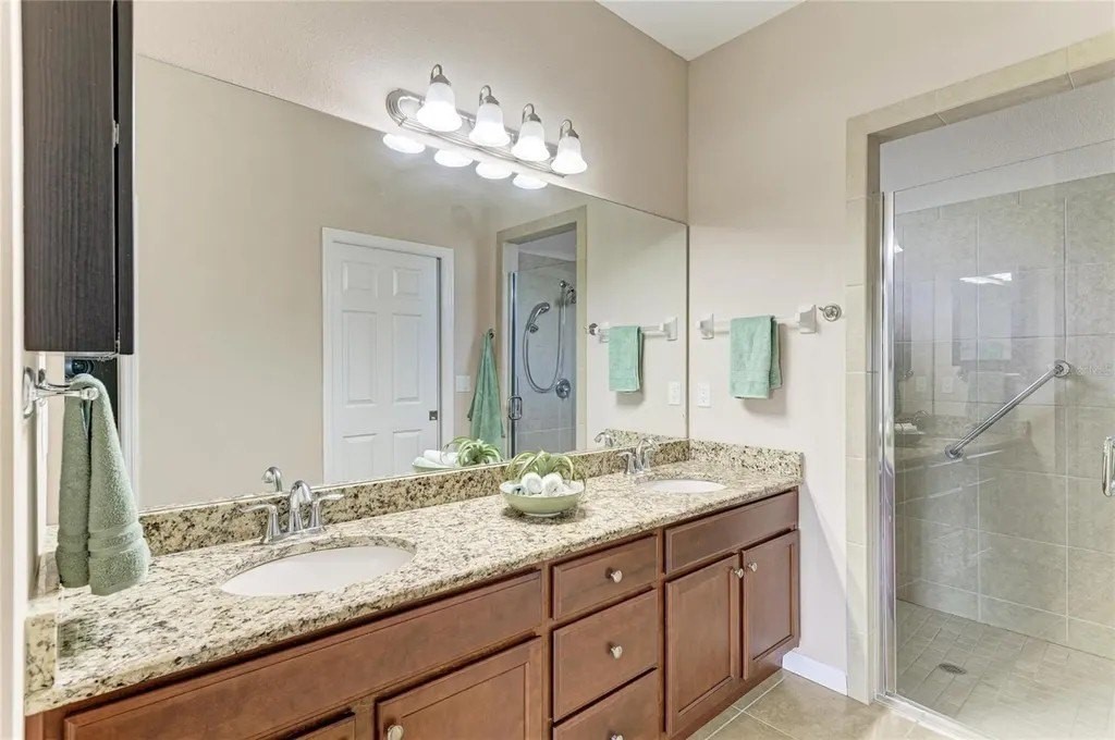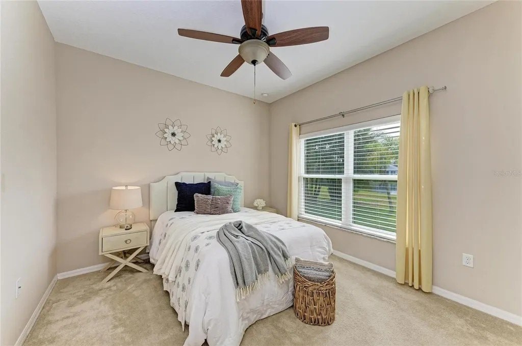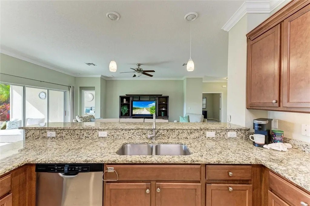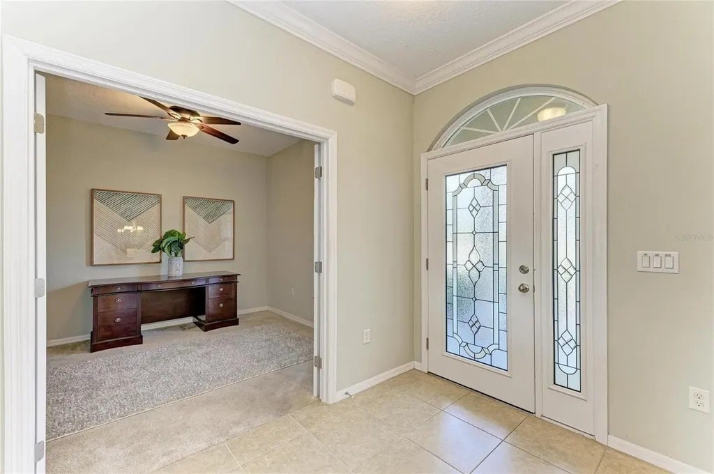 Welcome to one of the newest homes, built in 2014 by Center Pointe Homes, in the boutique Northwood Park enclave, ideally situated on one of the community’s premier lake front homesites with highly desirable southern exposure. This oversized, premium pie-shaped waterfront lot accommodates a 3-CAR garage with a beautifully stained decorative driveway featuring queen palms in the landscaping. From the welcoming front porch to the covered and screened-in lanai on the lakeside, this beautifully appointed residence has so much to offer! The spacious great room features crown molding and flows seamlessly into a formal dining area, creating an ideal setting for entertaining. The open kitchen is thoughtfully designed with granite countertops, abundant cabinetry, and a charming breakfast caf overlooking the backyard and tranquil lake views. The generous primary suite features lake views, a large walk-in closet and a relaxing bath with granite countertops and a huge shower. Tucked away, a private en-suite is ideal for a mother-in-law or guest suite with its own bath and large walk-in closet provides exceptional flexibility. Two additional guest bedrooms, a 3rd full bath, and a dedicated front office/den with French doors ensure ample space for work and relaxation. The home is equipped with a newer HVAC (2024), newly painted exterior (2025) and newer whole-house hurricane protection (2025), including the front door, utilizing roll-down and accordion shutters for enhanced peace of mind. A highly functional laundry room features front-loaders on storage pedestals, generous upper and lower cabinetry, and a long countertop perfect for folding or everyday drop-zone use. Additional highlights include a fenced east-side storage area, pull-down attic access with plywood flooring, and a partial home generator with one-touch operation. Low HOA fees, NO CDD fees, and a nearby community park further enhance the appeal. Ideally located near I-75 and I-275 with easy access to St. Petersburg, Tampa, Bradenton, and Sarasota, this home will provide the very best in the Florida lifestyle.